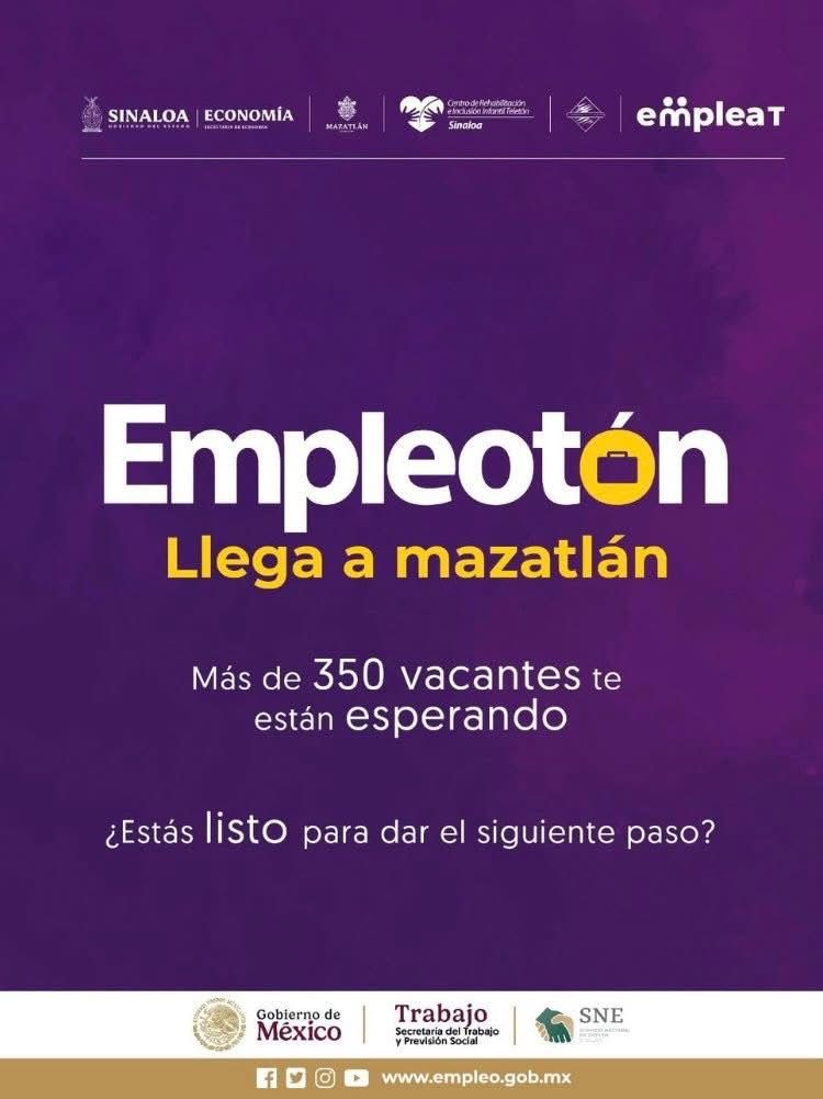 ESTATAL. Con el objetivo de promover la inclusión laboral y acercar oportunidades a quienes enfrentan mayores barreras para incorporarse al mercado de trabajo, la Secretaría de Economía de Sinaloa, a través del Servicio Nacional del Empleo en el estado y en alianza con Fundación Teletón, realizará la Feria de Empleo “Empleotón 2025” este viernes 27 de junio en Mazatlán.
