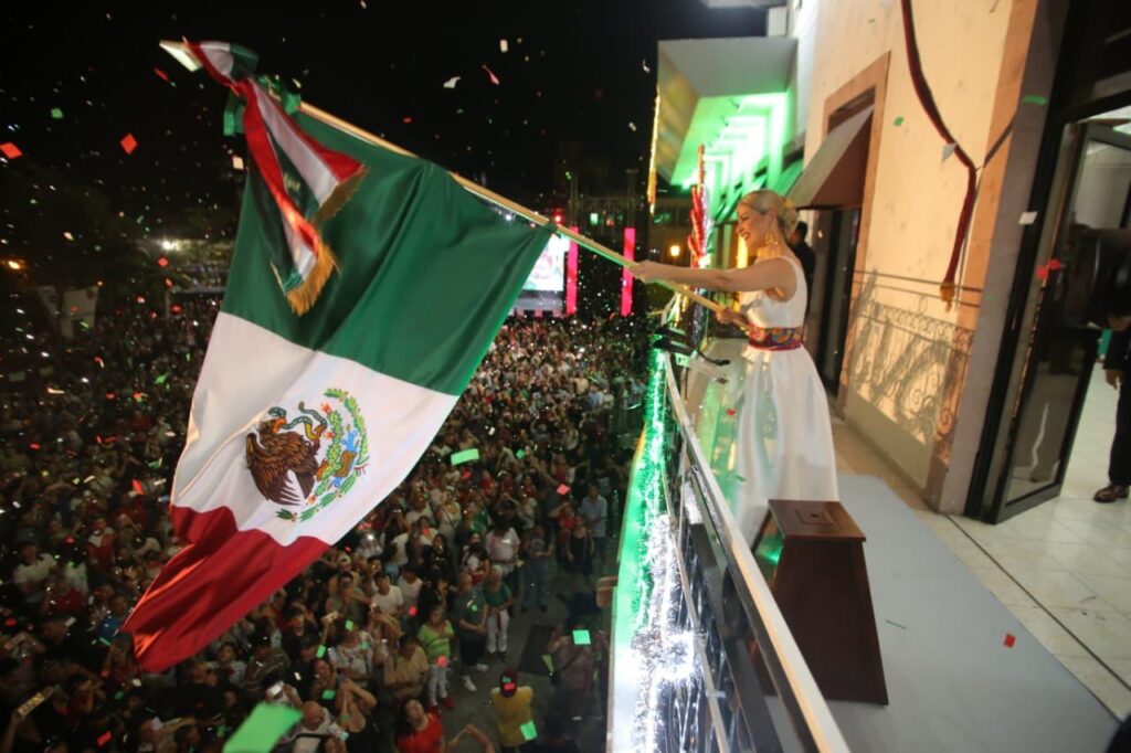 LOCAL. En un hecho histórico para el puerto, Estrella Palacios Domínguez, encabezó por primera vez la ceremonia del Grito de Independencia desde el balcón del Palacio Municipal, convirtiéndose en la primera mujer en hacerlo.