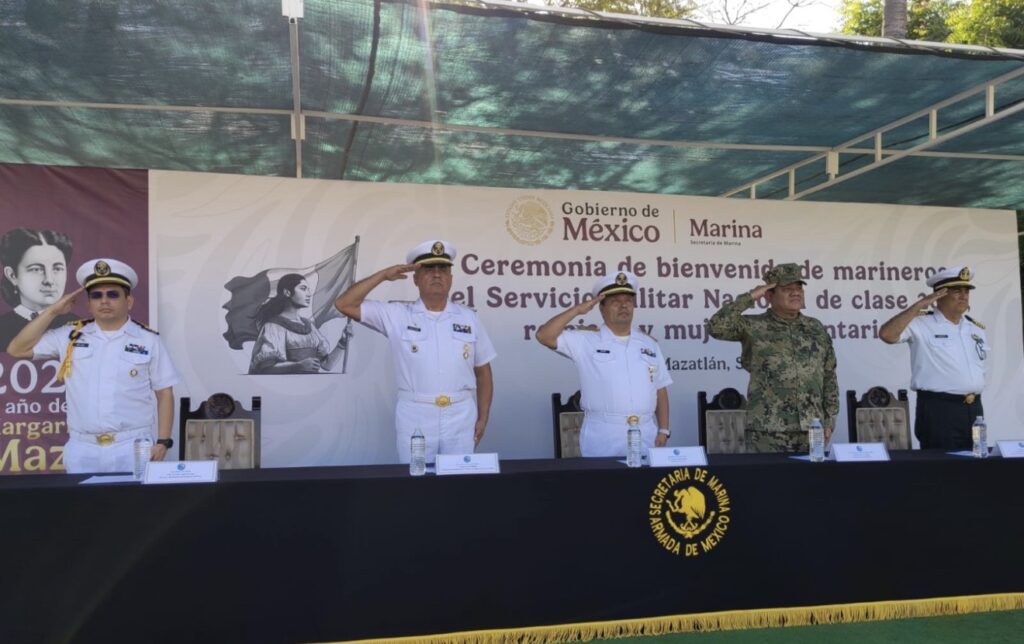 La ceremonia fue presidida por el C. Vicealmirante del Cuerpo General Diplomado de Estado Mayor, Sergio Reyes Rodríguez Inspector de la Cuarta Región Naval, en representación del Comandante de la Cuarta Región Naval; acompañado del Contralmirante del Cuerpo General Diplomado de Estado Mayor, Jesús García Molina, Subinspector de Establecimientos de Sanidad Naval de la Cuarta Región Naval; el Contralmirante Infante de Marian del Cuerpo de Fuerzas Especiales Diplomado de Estado Mayor, Pablo Lesley Cruz Bello, Comandante de la Brigada de Infantería de Marina número 4; el capitán de Navío del Cuerpo General Diplomado de Estado Mayor Aldo Christian Vega Ocampo, Jefe Accidental de la Sección de Personal de la Cuarta Región Naval y el Capitán de Altura Alfonso Bernardo Junco Peña, Director de la Escuela Náutica Mercante de Mazatlán «Cap. Alt. Antonio Gómez Maqueo», quienes dieron la bienvenida a 68 Marineros de Infantería de Marina, 31Remisos y 01 Mujer Voluntaria, al destacar la importancia del Servicio Militar como parte de la formación integral de los nuevos elementos.